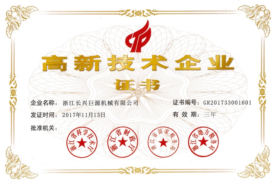 巨源机械自1996年以来企业的产品技术由中低档向高精尖端领域发展,目前已成为国内大型轴类盘类生产制造的基地之一,主要承制海军转动部件和大型电站汽轮机、工业汽轮机、燃气机、电机等核心产品的高科技制造。列浙江省机械协会成员单位,全国工商联科技装备业商会为副会长会员单位,当地人民政府确定为“重点工业企业”。